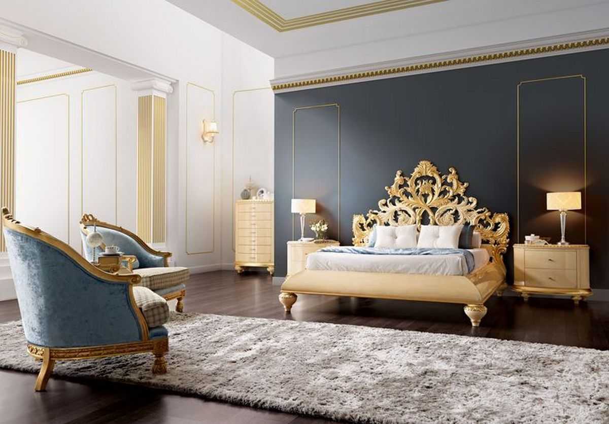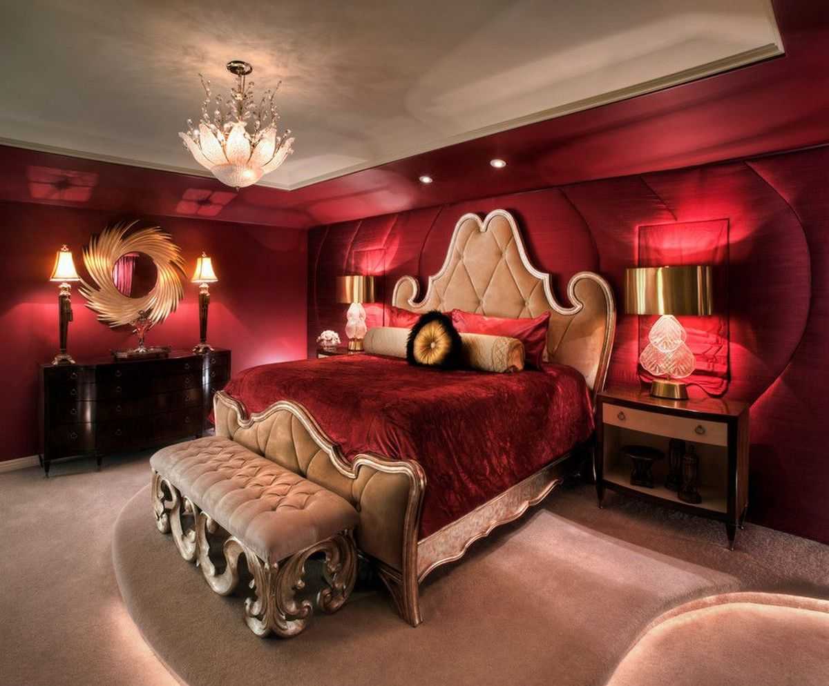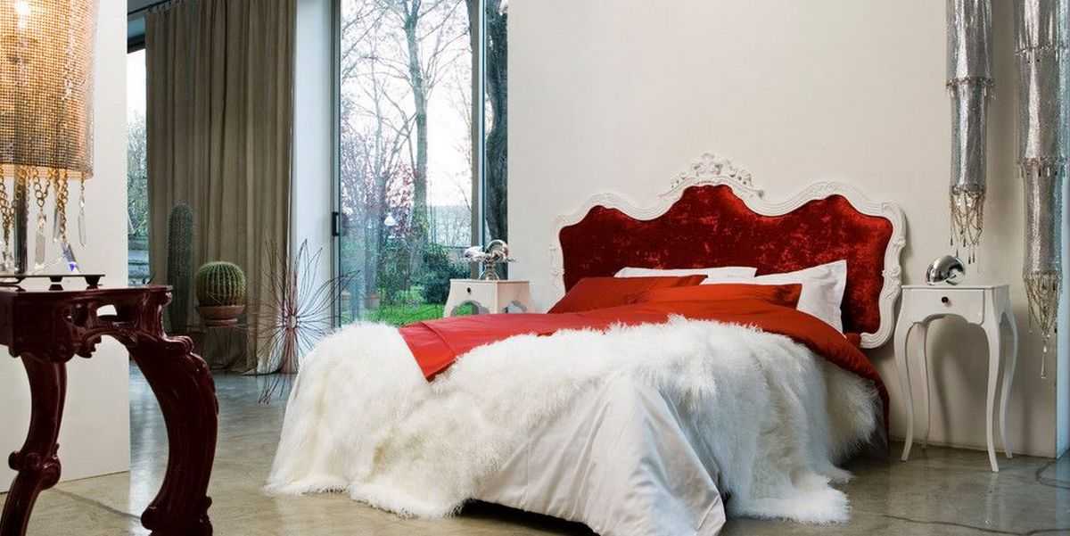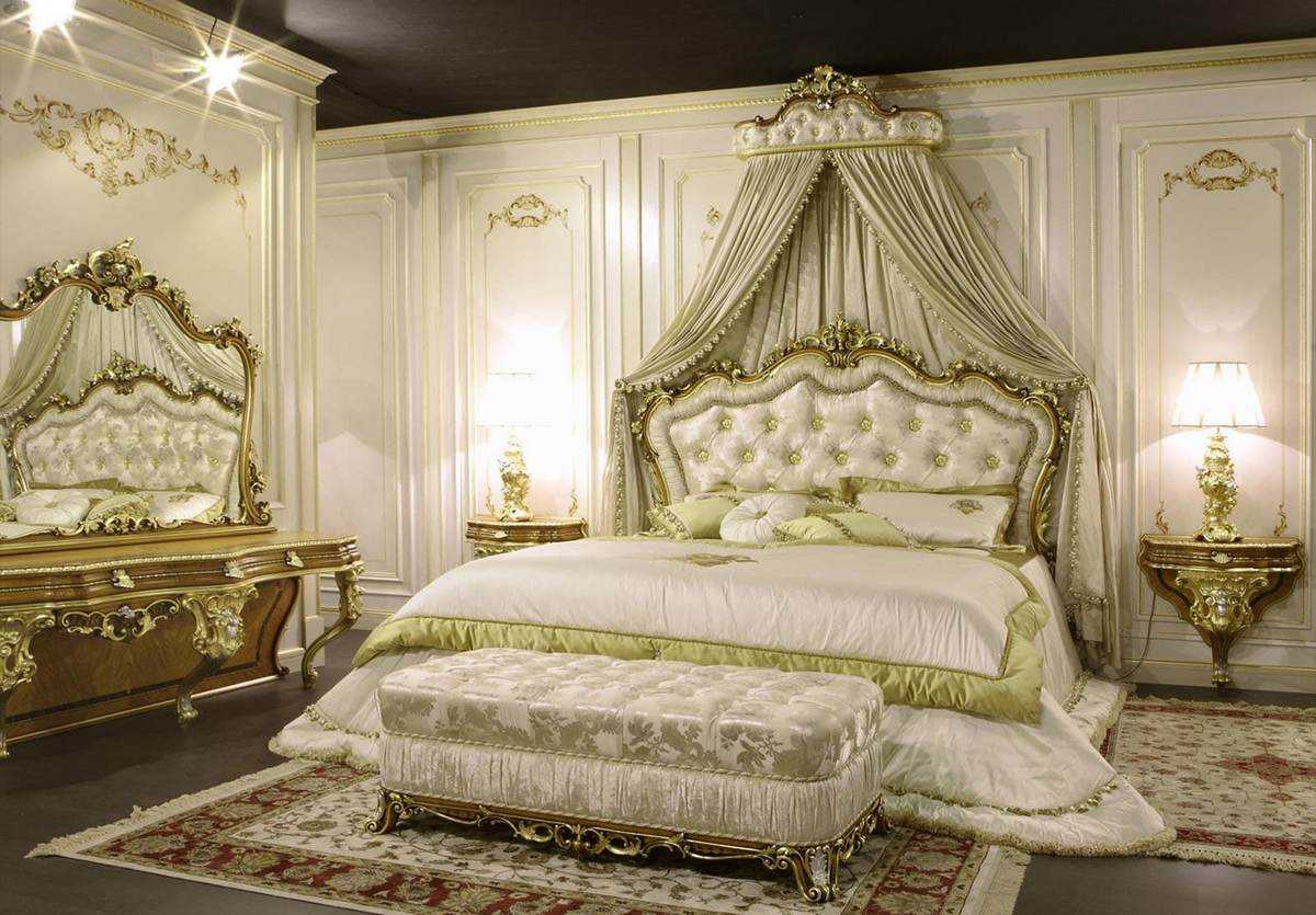 Стиль барокко в интерьере спальни предполагает использование дорогостоящих, шикарных материалов: