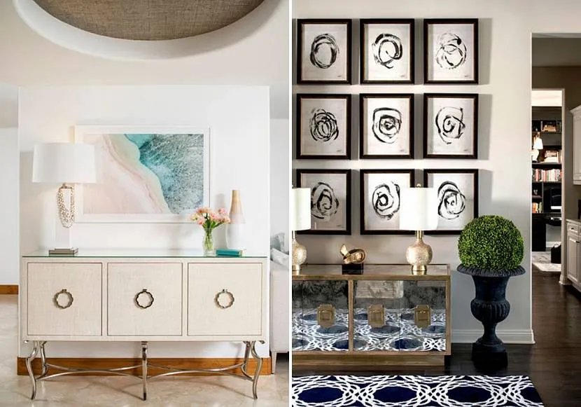 Составляя композицию на комоде или журнальном столике, дизайнеры обращают внимание на геометрию предметов и их сочетаемость друг с другом и предметами вокруг. Например, на крупном комоде будут странно смотреться маленькие аксессуары, поэтому лучше выбрать два-три крупных предмета. Но при этом вокруг них обязательно должен оставаться воздух и свободное пространство, чтобы не было ощущения перегруженности