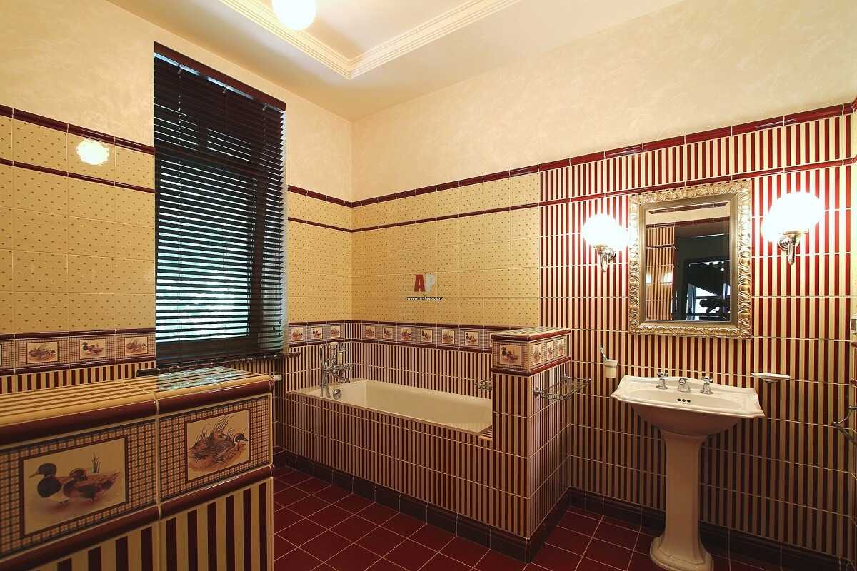 Классическим вариантом отделки стен и полов является дерево благородных пород: мореный дуб, темный орех, красное дерево. В качестве альтернативы для отделки стен можно использовать панели, декорированные «под дерево», для пола – керамическую плитку с имитацией этого натурального материала. Керамическая плитка представляет собой оптимальный вариант для отделки полов в ванной, прихожей, кухне. Здесь принято использовать мелкоформатную октагональную плитку со вставками контрастного цвета. Истинный Английский стиль