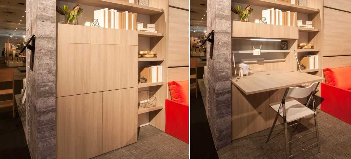 Мебель-трансформер уже никого не удивляет, но современные дизайнеры, вооруженные техническими новинками мебельных предприятий способны добавить в свои произведения что-то совершенно новое. Например, спальные места могут очень необычно включать в себя пространства для хранения вещей, а рабочие столы легко превращаются в большие зоны для приема пищи. Такие оригинальные решения позволяют располагать в малогабаритных квартирах полноценные зоны для отдыха, работы, сна и встреч с гостями. Главной особенностью интересной трансформирующейся мебели становится полное ее преображение. Глядя на кровать, никто из гостей не догадается, что подиум, на котором она расположилась, скрывает в себе огромный объем вещей. Рабочий стол с полноразмерным компьютером или моноблоком может предполагать средства для скрытия техники в нише.
