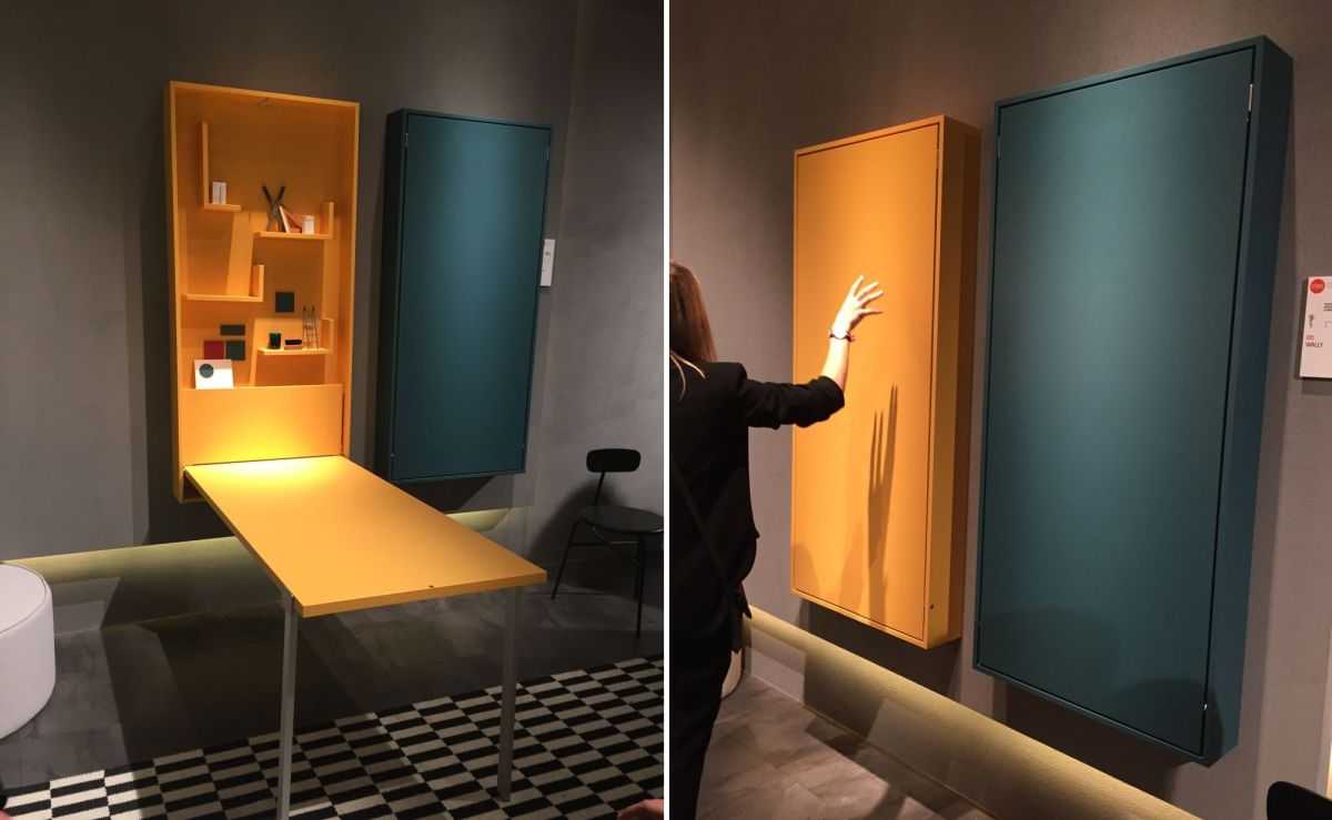 Столы, как и кровати, занимают много места и используются только в определенных ситуациях, а остальное время просто стоят на пути и занимают место, которое в противном случае могло бы использоваться другими способами. Уолли не делает этого. Это складной столик, который можно аккуратно хранить на стене и который показывает несколько полок, когда вниз.