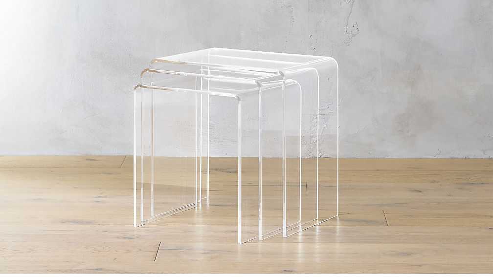 Вложенные таблицы по определению занимают мало места, но некоторые поднимают эту эффективность на новый уровень. Они делают это, будучи прозрачными. Это серия Peekaboo, набор из трех акриловых матрешек, которые практичны и не занимают много места физически и визуально.