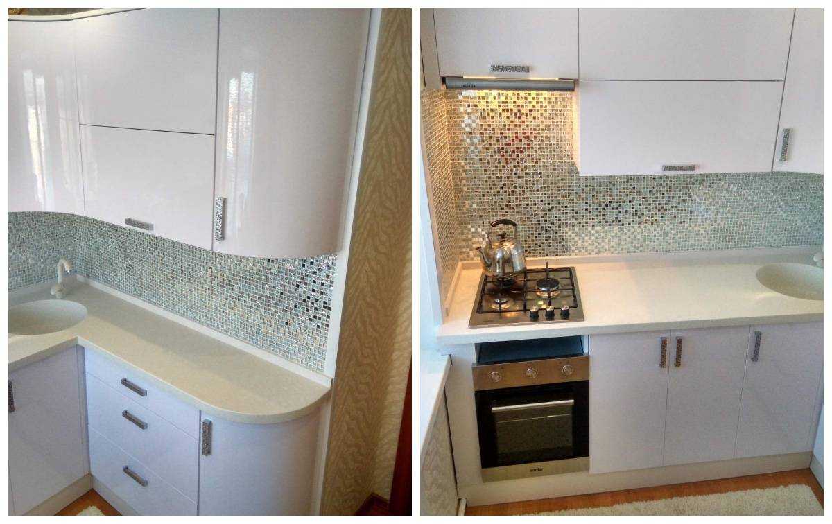 Грязные и шумные работы мы завершили к середине второго дня. В это же время попутно думали о том, как защитить мокрую зону вокруг рабочей поверхности. Над электроплитой у нас не было ничего, и за 12 лет этот пятачок превратился в фотографию ада. Денег на традиционные долговечные материалы у нас категорически не было, поэтому я обратилась к коллективному разуму френдов, чтобы мне помогли определиться с оптимальным вариантом бюджетного фартука и рассказали об устройстве своих. Из всех вариантов: кафель и мозаика, зеркало и стекло поверх обоев, недорогие тонкие пластиковые панели и ламинат – мне, конечно же, захотелось стеклянную мозаику! Всё же, ввиду ограниченности бюджета, решили остановиться на стеновой панели. Такой пользуется свекровь уже лет 20, причём вполне успешно.