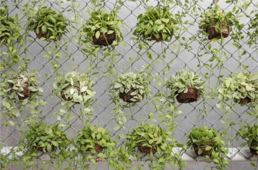 Живая изгородь требует времени на ее формирование и постоянного ухода. Если у хозяина участка нет такой возможности, он может украсить сетчатую ограду растениями, высаженными в горшках, закрепив их по всей плоскости пролетов. В результате этого получится оригинальный забор-клумба, который не только выглядит красиво, но и частично скрывает участок от посторонних глаз.