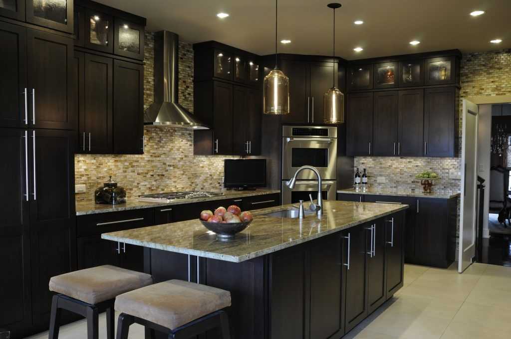Темные оттенки кухонной мебели характерны для лаконичных форм и минималистичных интерьеров