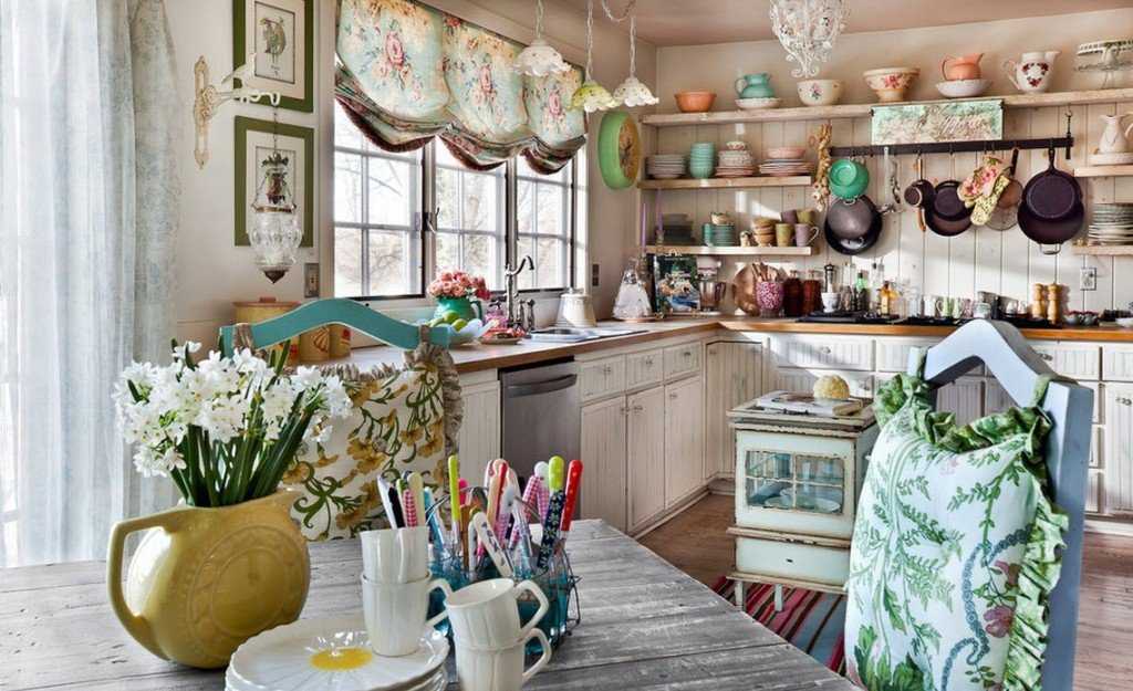 Прованс, рустик или кантри – подходящие стили для такого декора обеденной зоны.