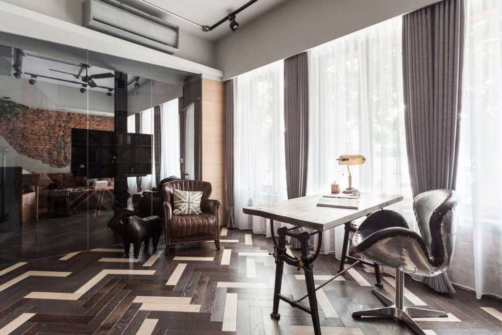 Стиль лофт лучше всего подходит для современных студий, хотя и в обычных квартирах можно воплотить некоторые основные идеи. Например, можно поставить кожаную мебель, самодельные полочки или журнальные столики, украсить помещение современной техникой, металлическими лампами и другими подходящими по стилю вещами. Предметы меблировки должны быть дорогими, в то время как отделка стен может выглядеть несколько заброшенно и неряшливо. Окна отличаются тем, что они большие: в приоритете панорамные, не имеющие штор.
