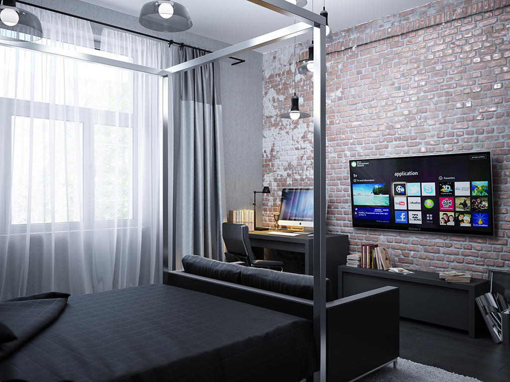 Спальня для молодых парней зачастую предназначена не только для сна и отдыха, а и для приёма гостей, занятий спортом и учёбы. Поэтому её интерьер должен быть максимально функциональным и комфортным.