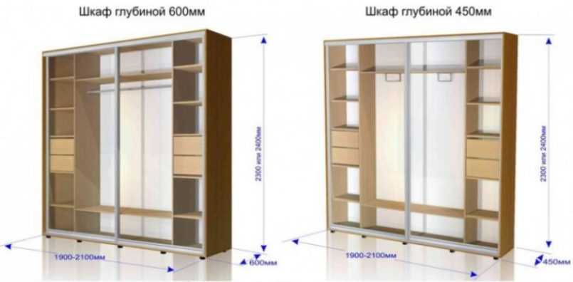 Глубина. Начинается от нестандартных типов для небольшого количества вещей (40-50 см) и заканчивается крупногабаритными моделями (более 60 см).