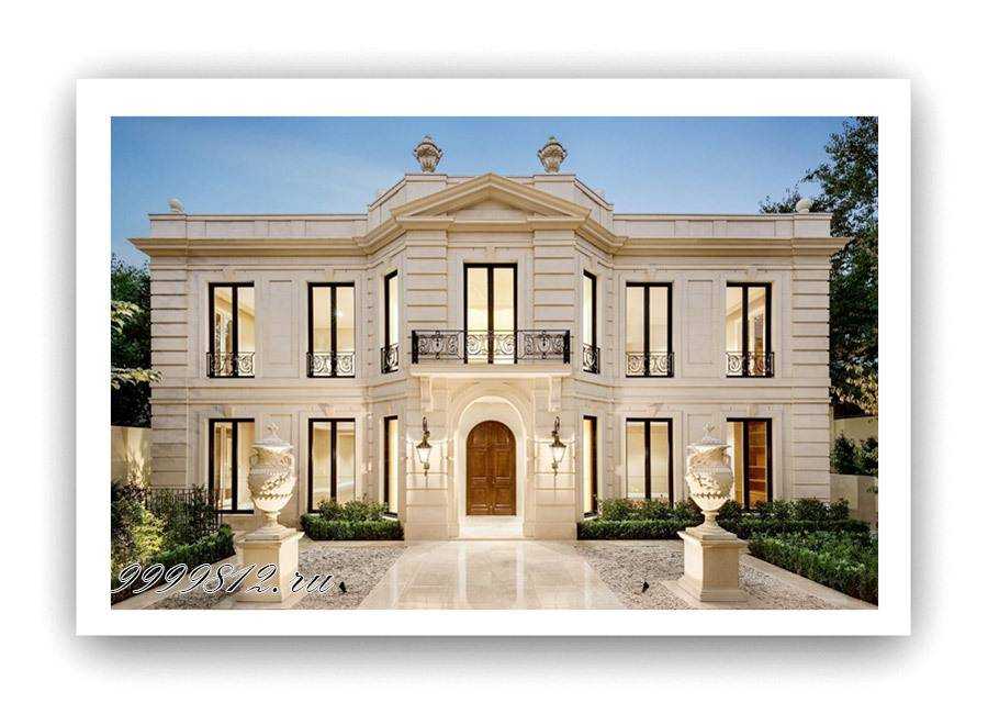 Также отличительными характеристиками архитектурного направления являются пилястры, арочные окна, рельефные карнизы, балюстрады, высокое массивное крыльцо, лестница с перилами, декоративные карнизы под крышей и над окнами. Стиль предполагает отделку фасада в кремовых, белых, бежевых, золотистых, серых тонах.