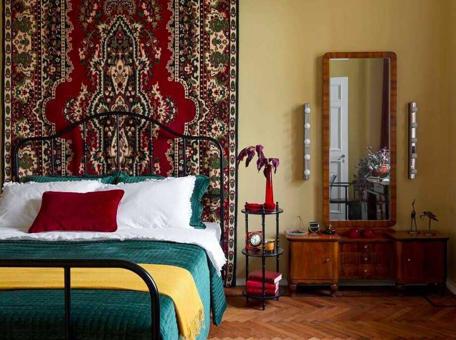 Раньше ковёр на стенах был практически в каждом советском доме, потом этот предмет стал признаком старого «бабушкиного», изжившего себя интерьера, но вот он снова возвращается как смелый и немного эксцентричный элемент стиля. Да и трюмо, которое стояло в каждой советской квартире, может смело вписаться в современный интерьер. Дизайнер Алёна Сковородникова