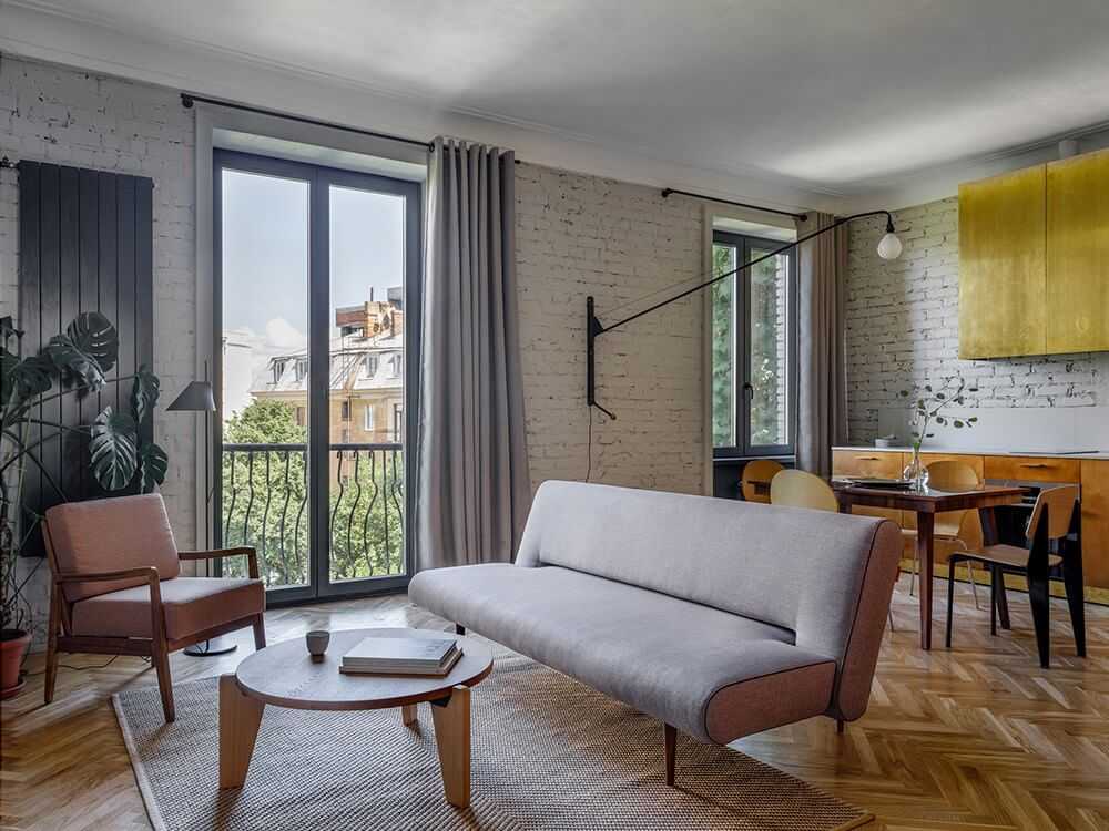 Элегантный интерьер в стиле mid-century с использованием советской мебели в центре Киева. Студия Emil Dervish