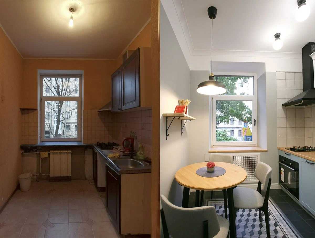Придется перестилать полы, выравнивать стены и потолок, а при возможности даже производить перепланировку помещения, так как вся семья прекрасно разместившаяся на роскошных сталинских метрах, в маленькую кухню просто-напросто вмещаться не будет.