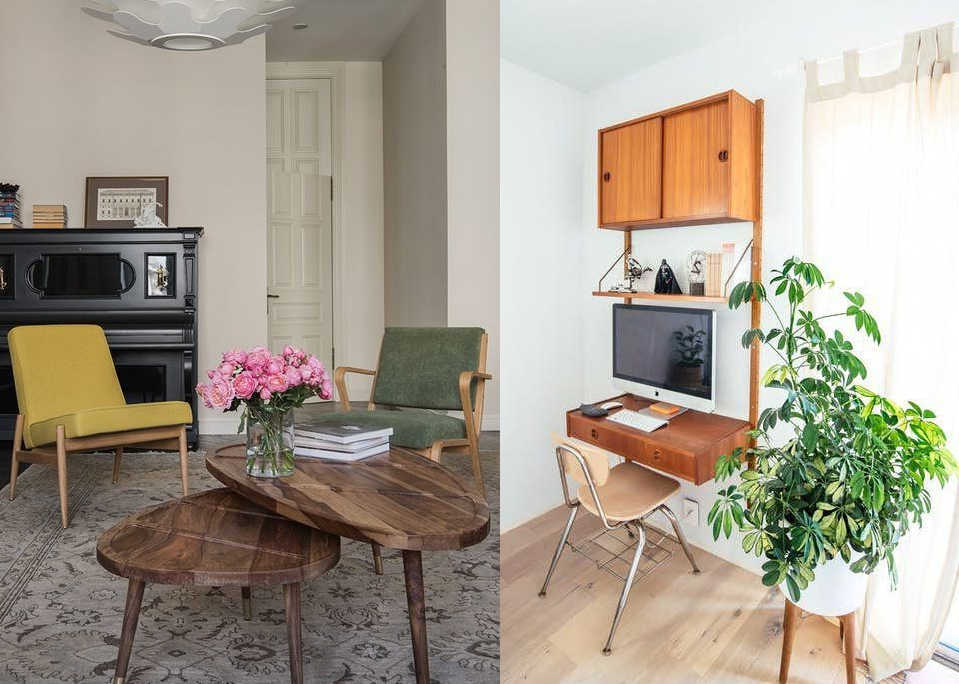 Миксовать современность можно как с массивными мебельными объектами в стиле «профессорская квартира» (помните такую в кинофильме «Москва слезам не верит»?), так и с объектами в стиле советского мид-сенчури.