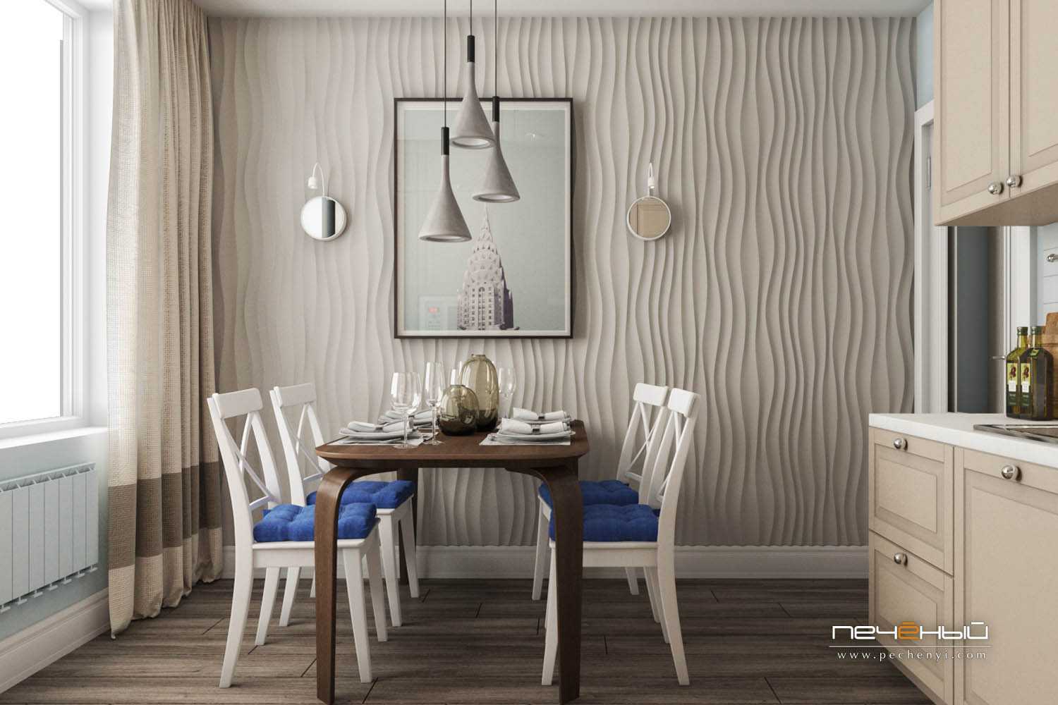 Акцентная стена в помещении всегда задает тон. И наш случай не исключение – получилось очень нарядно!