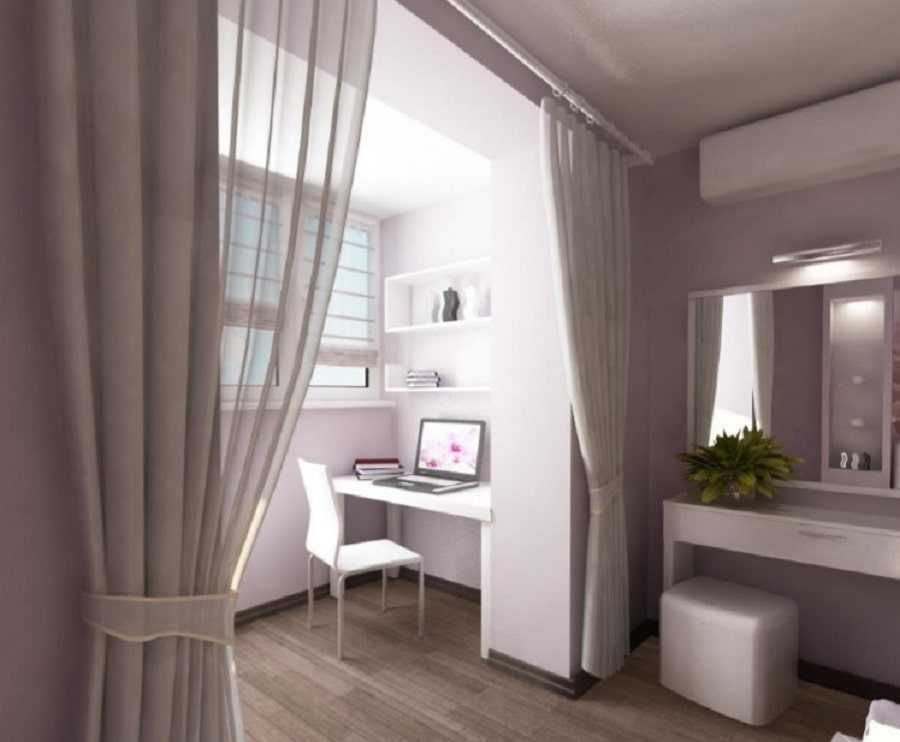 Рабочая зона компьютера часто нуждается в уединении. Ее можно установить на утепленном балконе, в нише, в нескольких метрах от окна или спрятать за шторами.