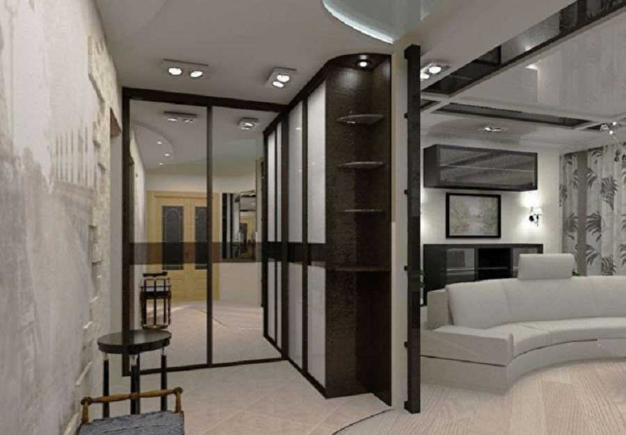 Перегородку, разделяющую кухню и гостиную, допустимо снести, установив вместо нее другую, в том числе расположенную по диагонали относительно кухни, прихожей. Иногда за счет прихожей расширяют санузел, присоединяют балкон.