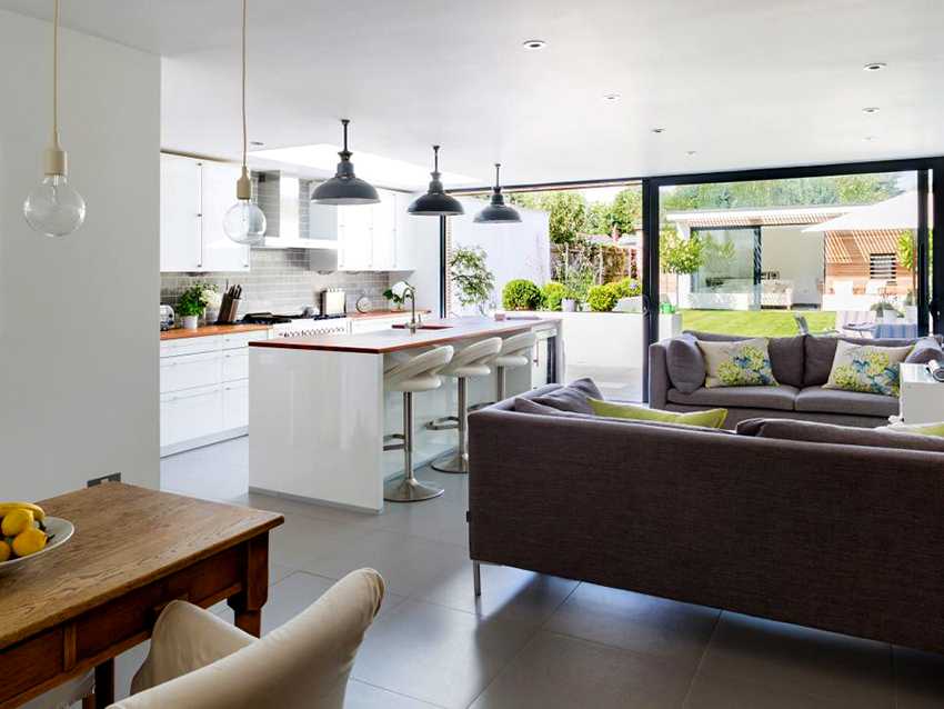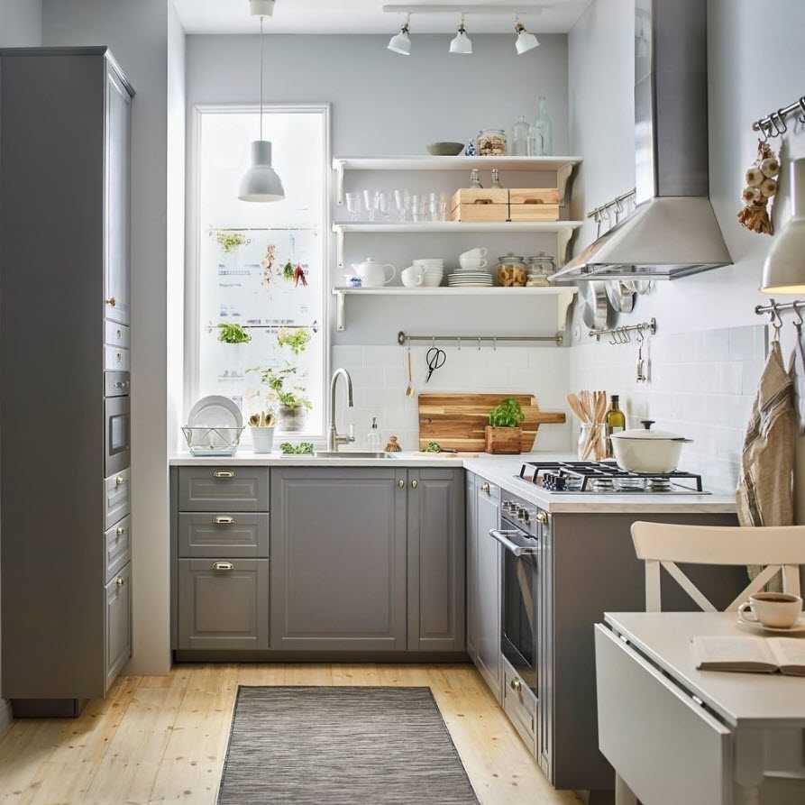 Большие угловые окна принесут в небольшую кухню изобилие света и ощущение уличной свежести. Это относительно простой и модный способ придать кухне открытый и веселый вид.