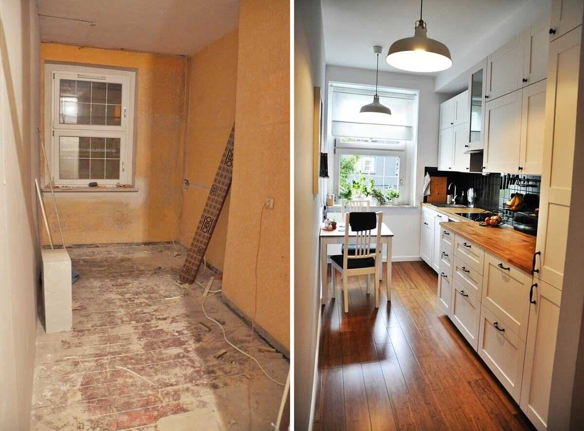 Дизайн маленькой, узкой и длинной кухни, которая так часто встречается в двухкомнатной квартире. Как видите, даже небольшая закрытая, приватная комната может быть красивой.