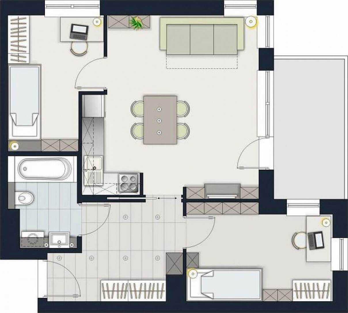 Перепланировка двухкомнатной квартиры сулит вам довольно большие денежные затраты, но в итоге вы получите современную квартиру на уровне дорогих европейских жилых комплексов. Если типовая планировка не отвечает вашим нуждам, следует обратиться за помощью к дизайнерам интерьера.