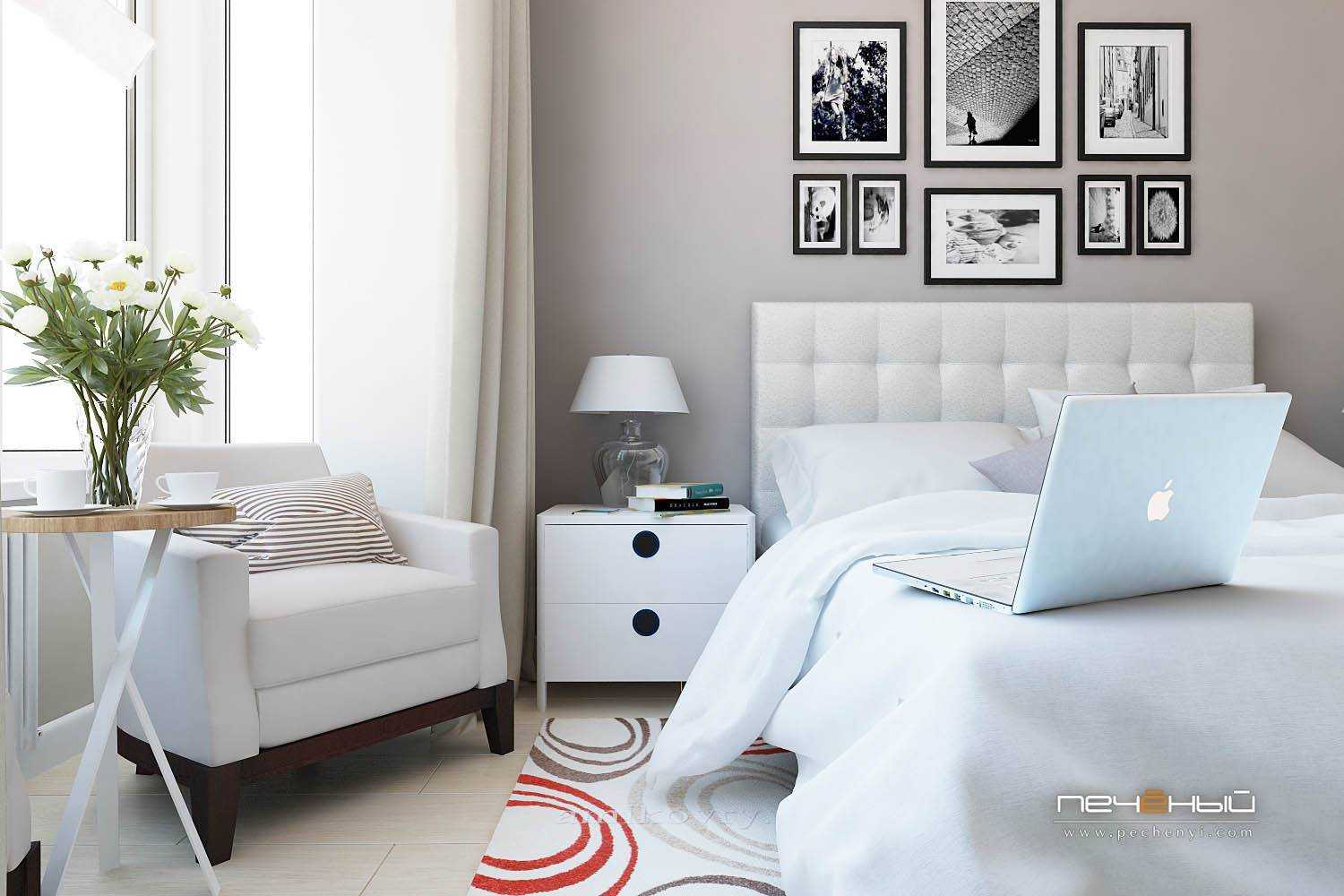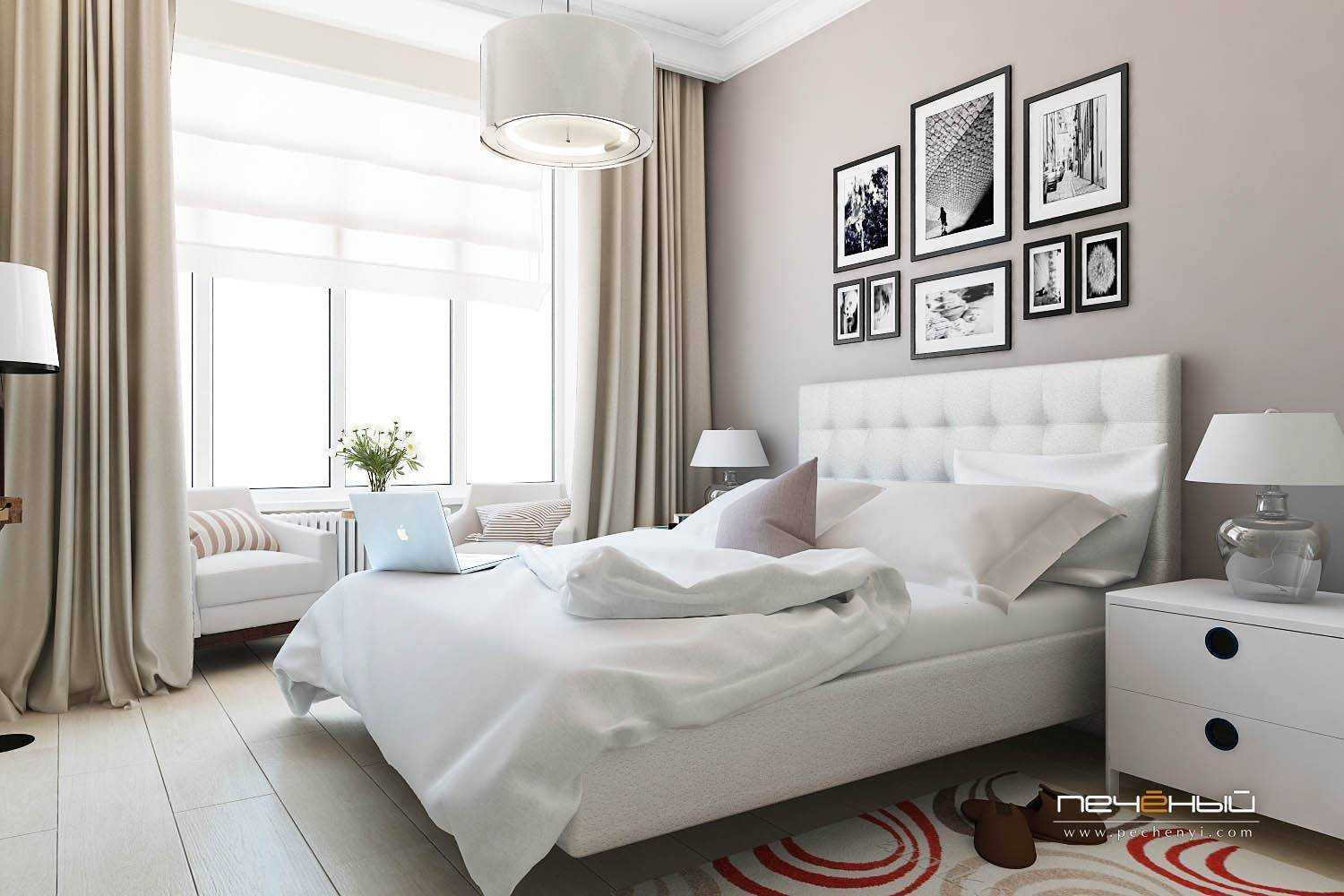Светлые оттенки зрительно увеличивают пространство, что немаловажно для малогабаритных квартир. Фактурные материалы идеально подходят для просторных спален в современном стиле