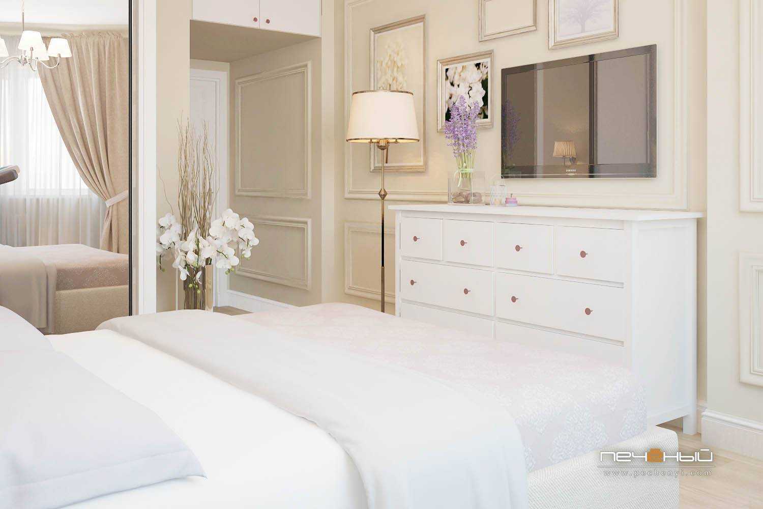 Если размещение телевизора в спальне — это спорный момент, то наличие зеркала — обязательно. Особенно, если в комнате есть платяной шкаф или гардеробная.