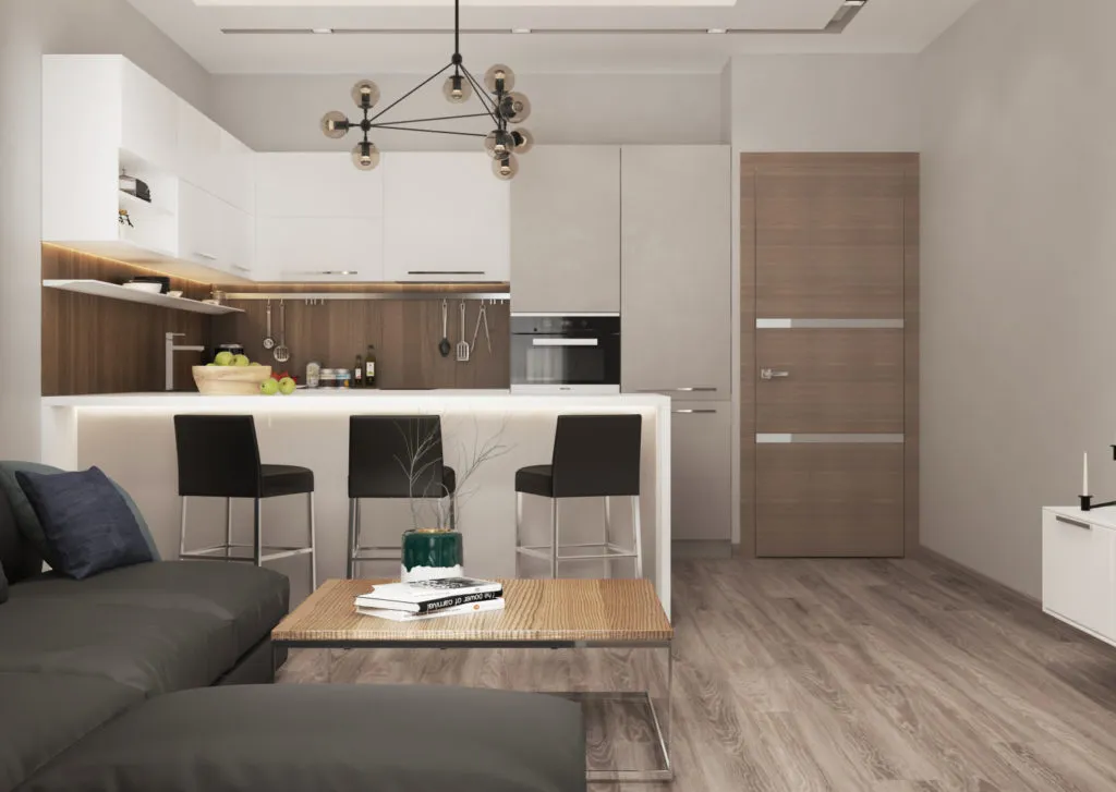 Внедрить долговечную поверхность можно в различные дизайны интерьера. Кроме пола, фартука, раковины и столешницы, можно сделать мебель из керамогранита. Дизайнеры это часто применяют, например, на фасаде кухонного гарнитура. Если часть мебели выполнена в таком виде, то возможно оформить его в другие комнаты: в гостиную на столешнице кофейного столика и коридор с аналогичным полом.
