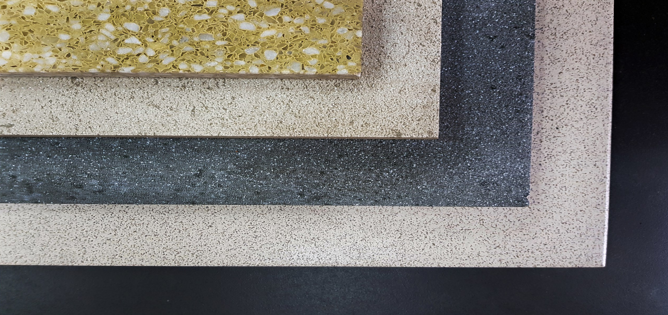 - Структурированный вид, создаваемый специальными формами под давлением пресса. Подобным образом создают фактуру дерева или насечки для антискольжения.
