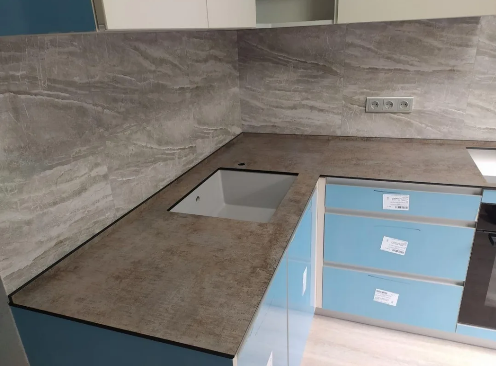 Фартук из искусственного камня будет намного прочнее и долговечнее, чем любая другая керамическая плитка.