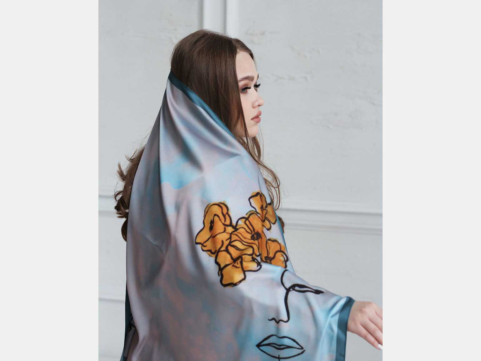 Случайно вспомнила о нежной картине Ван Гога «Цветущие ветки миндаля» и подумала: «А что, если взять творчество моего любимого художника за основу?» Лёгкие ткани, чёткие формы, природная яркость — всё это присутствовало в его произведениях и вдохновило меня на создание своих изделий: платьев с пышными рукавами, широких пиджаков, вещей с драпировкой. А потом на основе всё той же картины я создала нежный принт для платков в оригинальных безмятежных цветах.