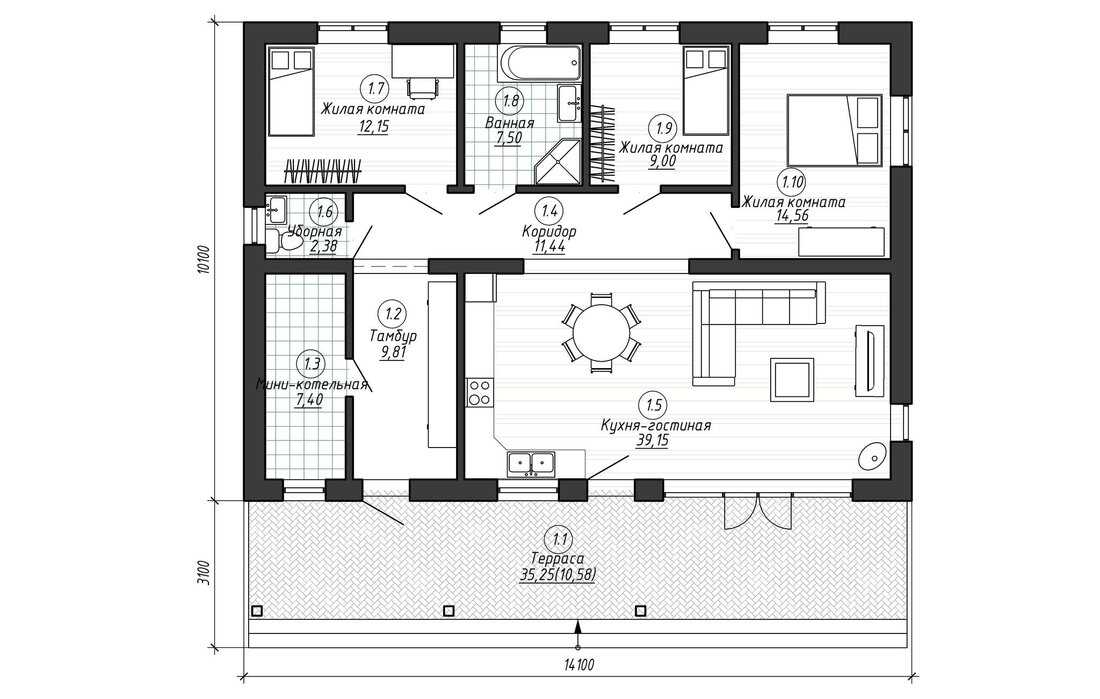 Рационально в 1-этажные проекты включать минимальный набор помещений, иначе дом займет слишком много места на участке. Но если площадь позволяет, вполне можно добавить, например, гараж или спортзал.