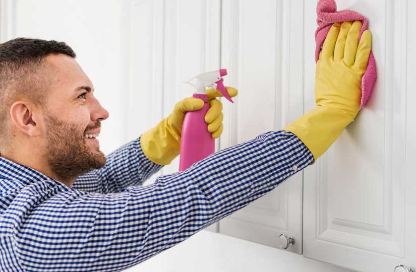 - Прежде чем почистить незнакомым средством шкаф на кухне, нанесите его на небольшой участок сбоку. Посмотрите результат: оставит ли оно выбеленное пятно, очистит ли жир, легко ли смоется;