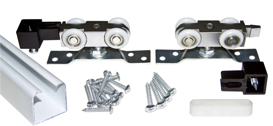 Стандартный набор раздвижных систем для межкомнатных дверей состоит из следующих комплектующих: