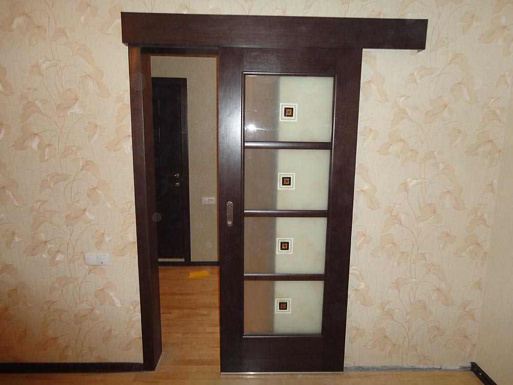 Раздвижные двери могут отличаться друг от друга не только внешне, но и конструктивно. Идея двери-купе в жилом помещении, видимо, позаимствована у железнодорожников. Точнее, таковые изначально были атрибутом купейных вагонов. Чтобы обеспечить движение полотна параллельно плоскости стены, сверху над проемом крепится рельса.