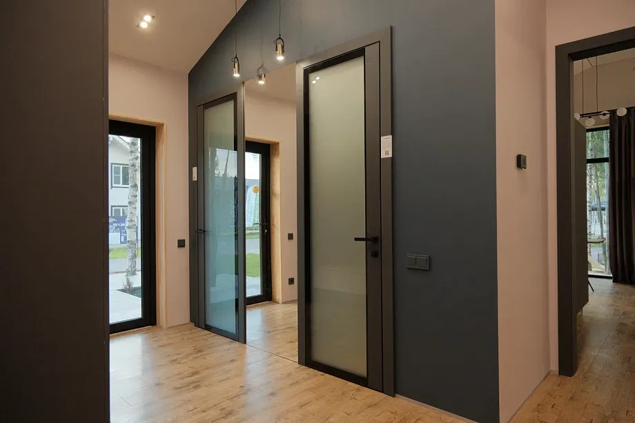 В доме «Гент 115 Про», который мы построили для Open Village, высота потолков составляет от 2,5 до 3,7 м. Чтобы дизайн был органичен, в доме мы установили двери от «Профильдорс» высотой 2,3 м