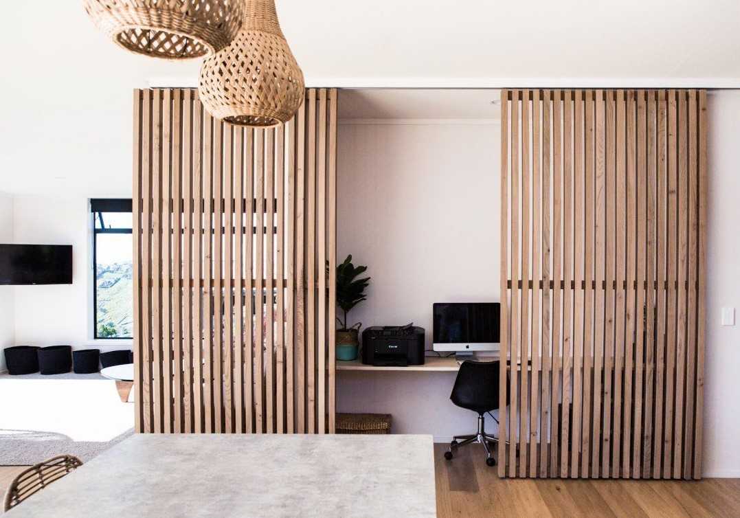 Рис. 15. Рабочая зона отделена раздвижными перегородка из деревянных реек  |