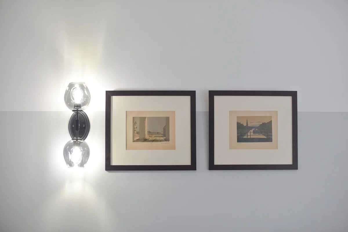 В квартире много элементов, отсылающих к советской эпохе: ретрохолодильник, паркет «елочка», окрашивание стены в два цвета. Все картины в интерьере — это старые графические рисунки, которые подобрал и привез сам заказчик.