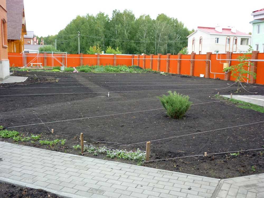 - Подготовьте территорию: очистите участок от мусора, удалите сорняки, корни растений. Обработайте почву гербицидами. Хорошо разрыхлите грунт. При низкой плодородности почвы на небольшом участке желательно удалить верхний слой грунта и засыпать новый толщиной до 15 см.