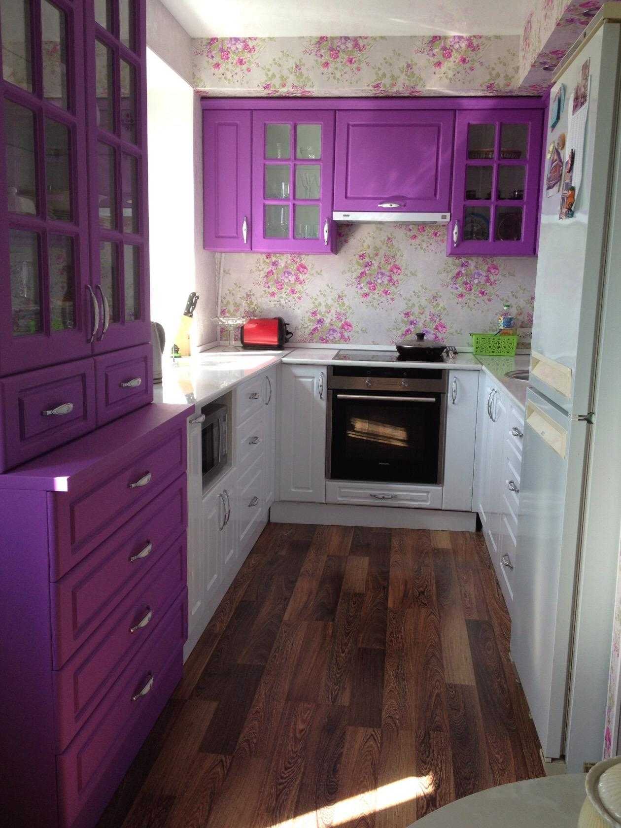 Грань между розовым и фиолетовым оттенками достаточно тонкая, поэтому такая цветовая комбинация будет выглядеть очень гармонично и украсит любой интерьер. Благодаря такому сочетанию тонов можно визуально увеличить кухню.
