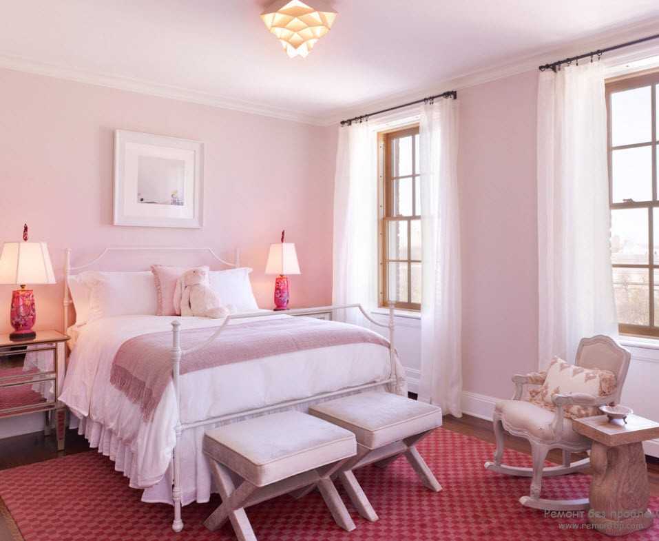 В спальне. Умиротворение и умиротворение — прерогатива пастельно-розовых тонов. В такой комнате неизменно будет царить любовь.