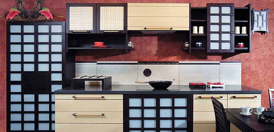 Чтобы раскрыть весь потенциал фиолетового и розового, стоит создать интерьер кухни в восточном стиле. В нем рекомендуется использовать баклажанный и пурпурный оттенки, а также нежный пудровый и цвет чайная роза.