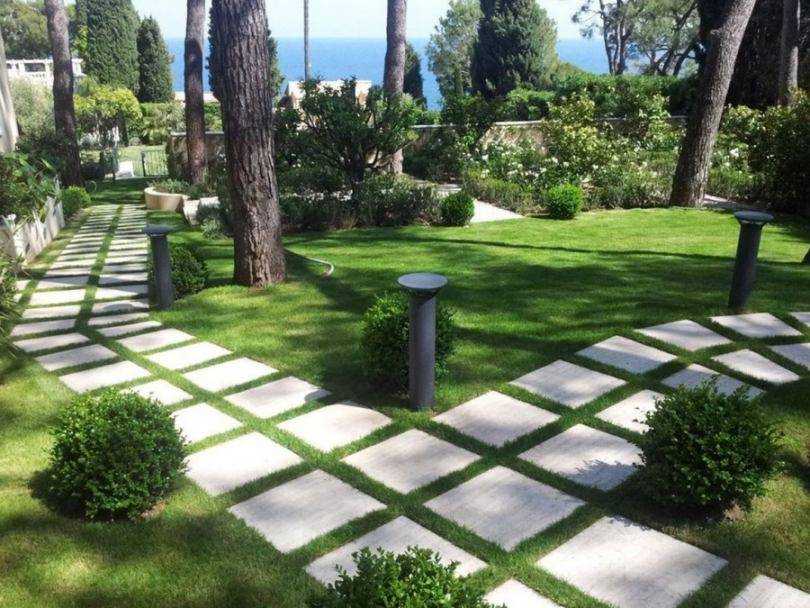 - все объекты должны соединяться дорожками. Выбирайте их обустройство при помощи кирпичной кладки, деревянного спила и прочих материалов. Некоторые владельцы загородных участков используют для подобной цели бетон, керамзит. По краям тропинок посадите цветы, установите фонарики;