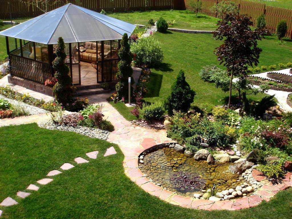 Как видно на фото участка 20 соток, есть множество оригинальных приёмов и задумок для декорирования ландшафта.
