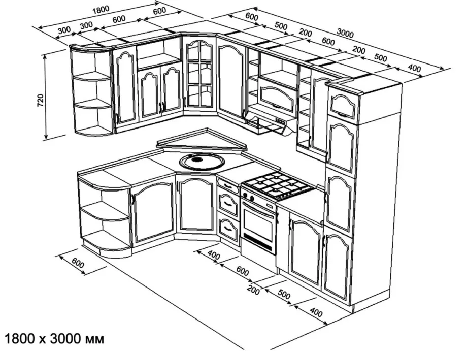 - Эскиз служит основой для точного чертежа. Если это, например, платяной или кухонный шкаф, рассчитывают параметры задней и боковых стенок, габариты фасадов, расположение и размер полок и ящиков.