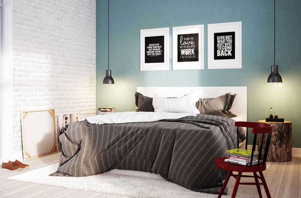 Отличным решением будет создание акцентной стены из ламината. Этот актуальный и модный тренд прекрасно впишется в интерьер спальни.