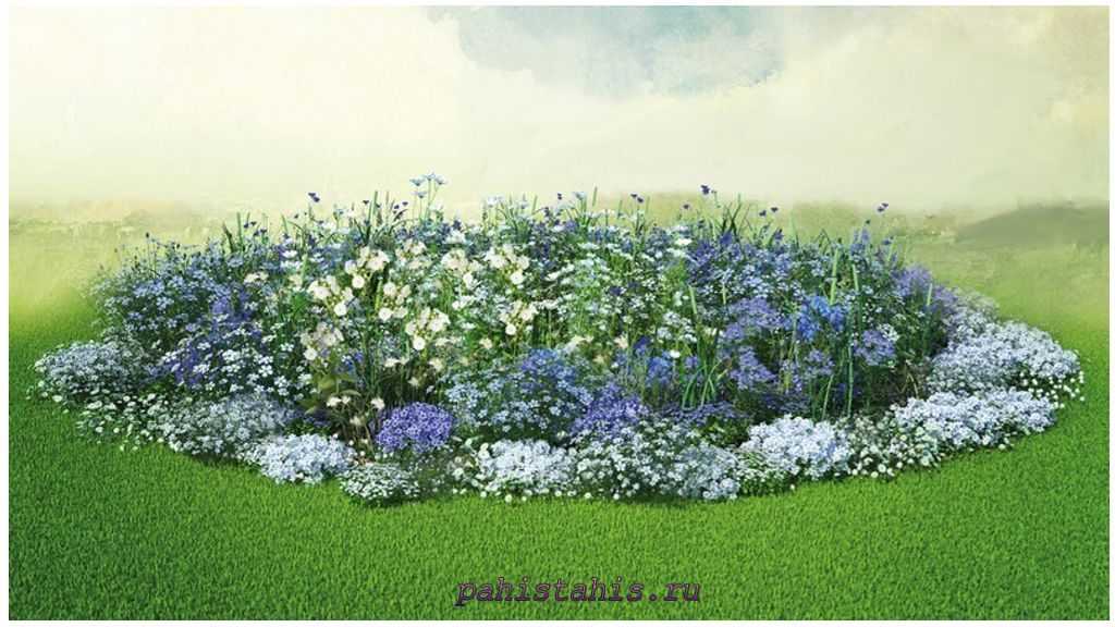 Однотонная цветочная клумба – еще один вариант дизайна. В этом случае высаживают разные растения, но выбирают только те, которые соответствуют окраске листьев и бутонов.