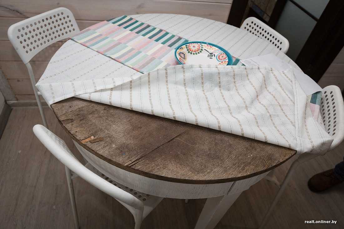 Стол остался от прежних хозяев — нужно было только отмыть его «керхером» и покрасить. Прикрытый скатертью, он выглядит вполне ничего.