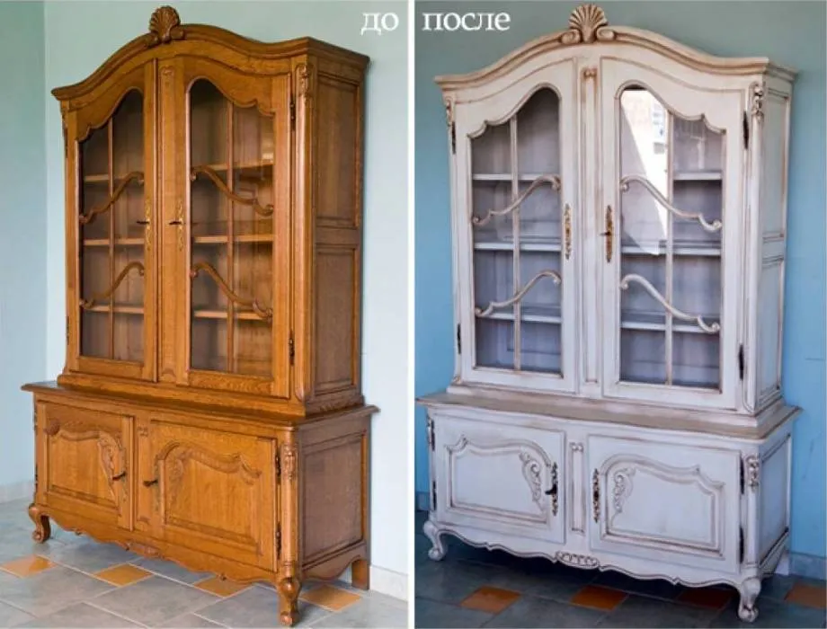 Обновить шкаф, стулья, полки, стеллажи или кухонные фасады можно своими руками – достаточно перекрасить их.