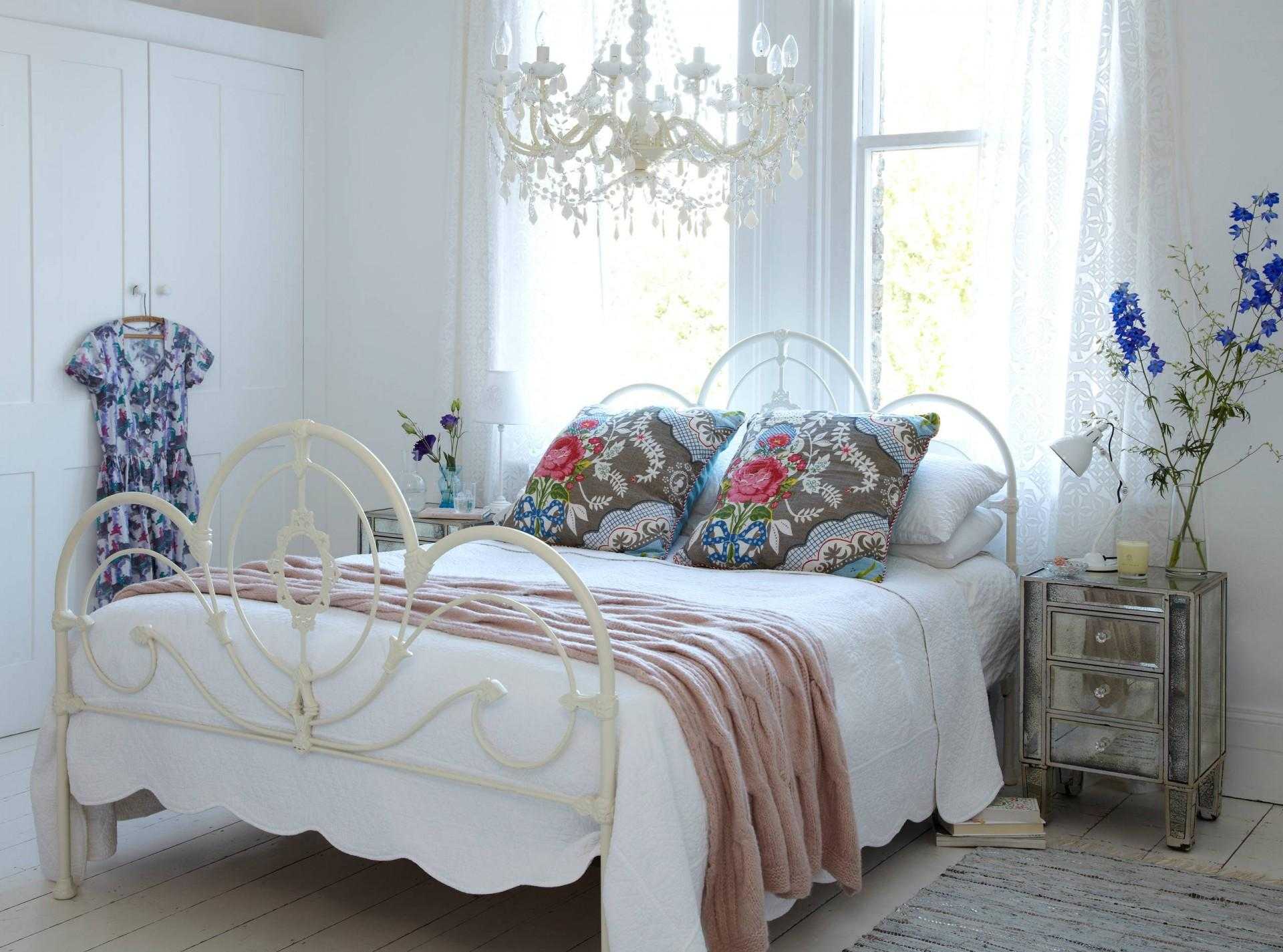 Светлая спальня с яркими подушками в стиле бохо