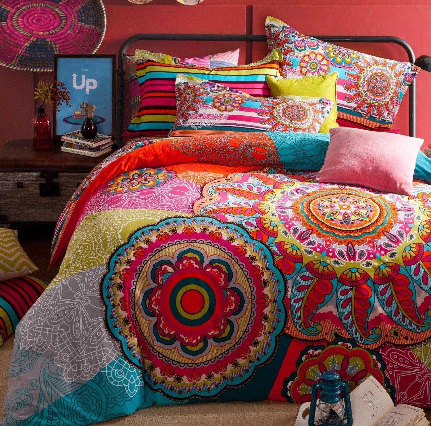 Красивая яркая спальня в стиле бохо